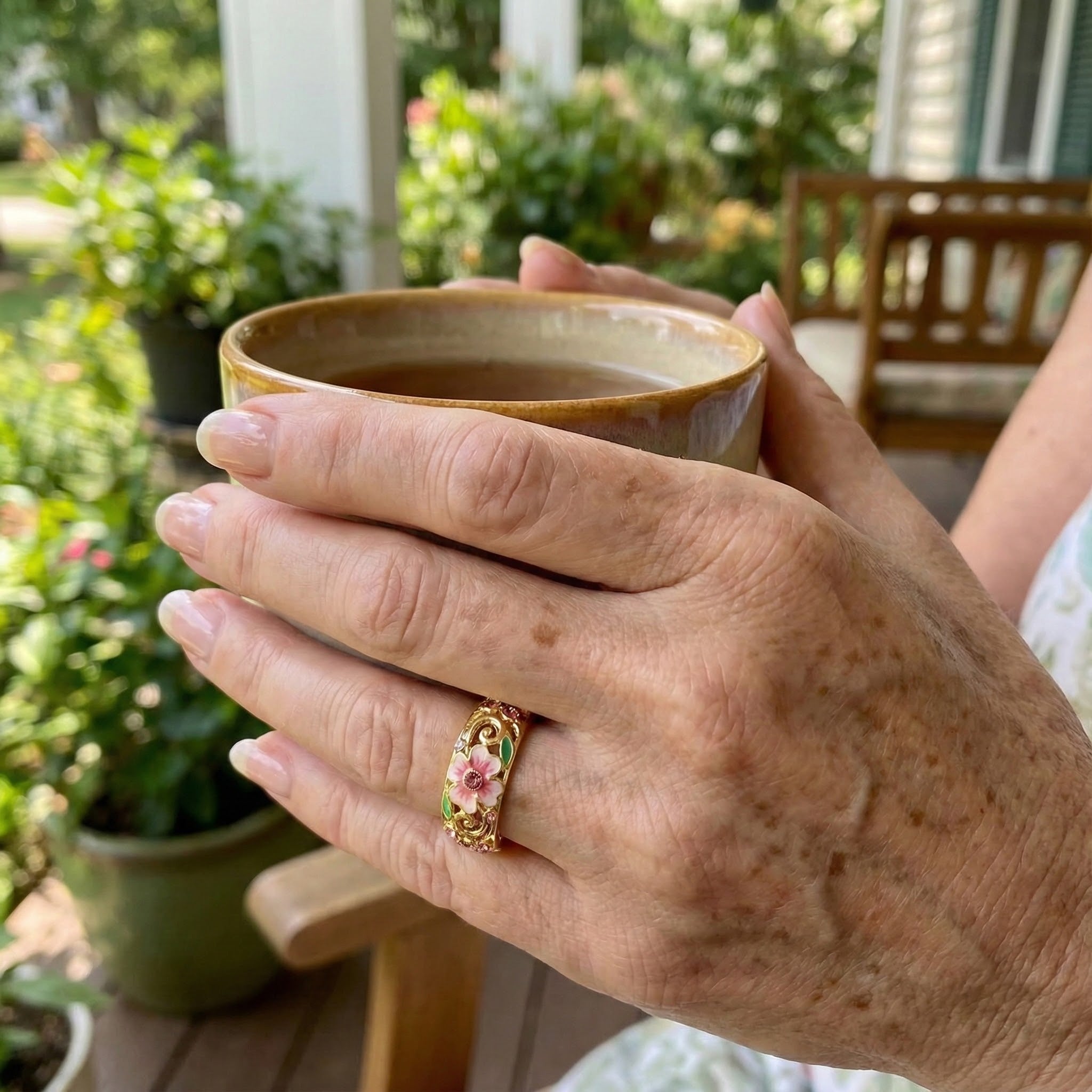"I collect vintage jewelry and this bangle caught my eye. The enamel work on the flowers is exquisite—it reminds me of a bracelet my mother had in the 70s. It feels substantial and the clasp is very secure. I’ve already received so many compliments at church. I’m coming back to buy the matching ring before stock runs out!"